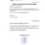 SCHOOL CLOSURE DUE TO EID HOLIDAY